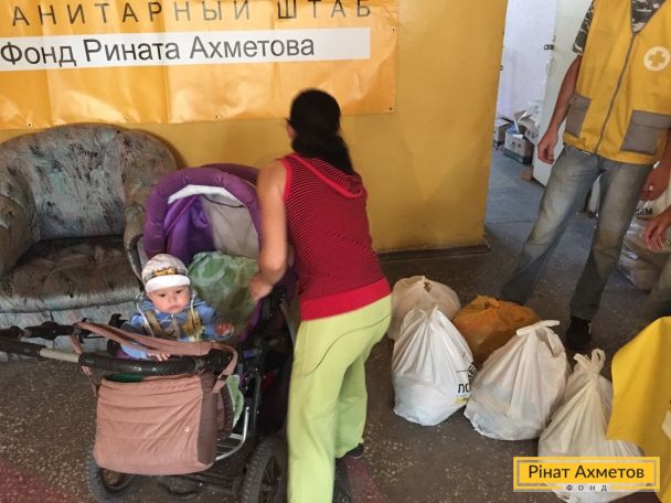 Штаб Ріната Ахметова почав видавати дитячі набори для сімей із дітьми до 35 місяців у місті Сніжному Донецької області, розташованому на непідконтрольній території.