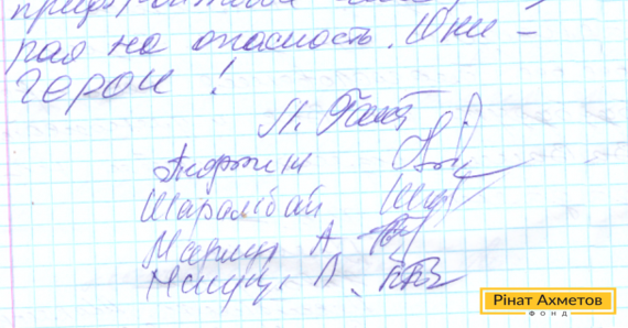 На адресу Ріната Ахметова прийшов лист від жителів Кам'янки. Люди пишуть: «Ми всі вдячні Вам за допомогу! Дякуємо Вам за добре серце, за відкриту душу. Окрема подяка Вашим волонтерам. Вони виїжджають в зону АТО, в прифронтові села попри небезпеку. Вони герої!»