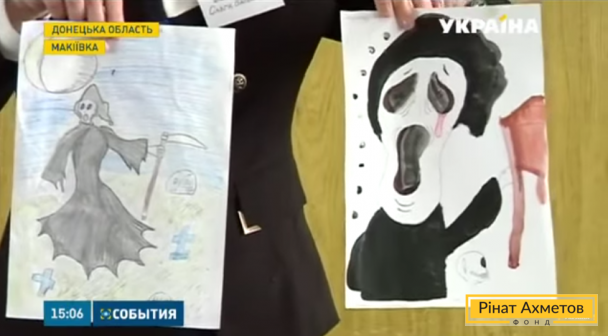 Смерть із косою, привиди, сіро-чорні та криваві образи, темні люди з темною душею. Так малюють діти, які пережили війну.