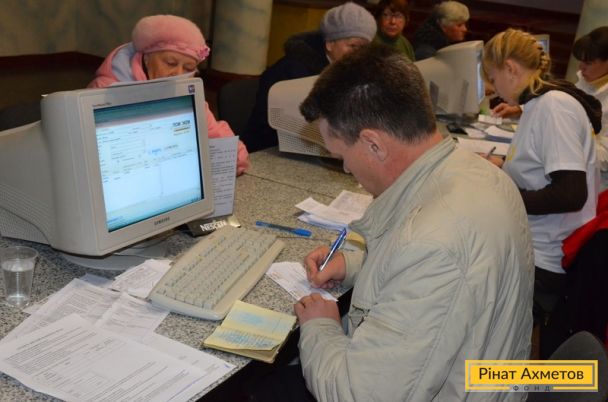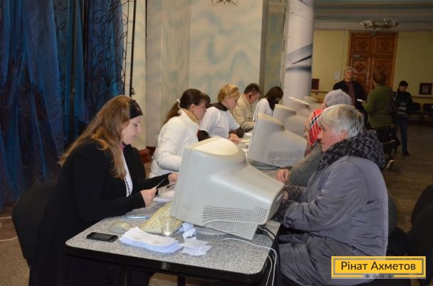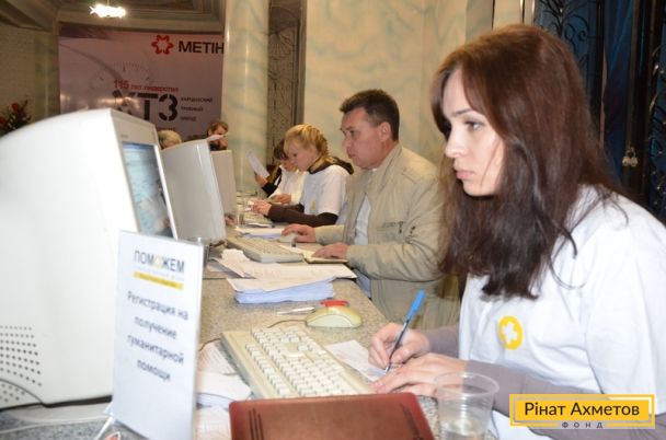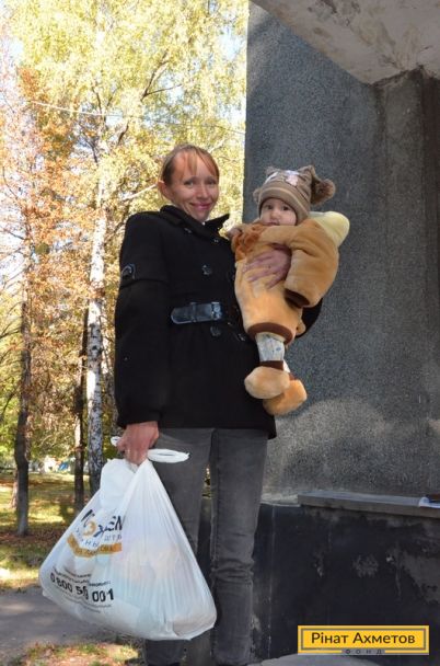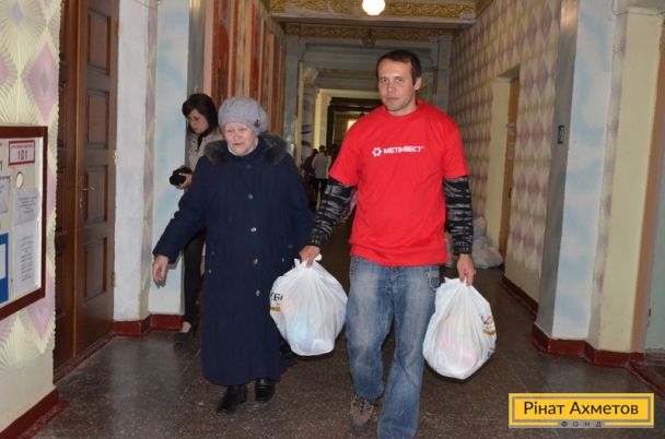 У Харцизьку продовжує працювати Центр видавання допомоги Гуманітарного штабу Ріната Ахметова. Щодня сотні жителів шикуються в чергу за продуктами. Наразі продукти отримали приблизно 3 000 осіб.