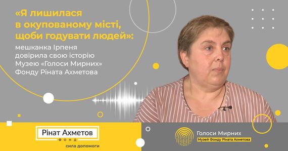 «Я лишилася в окупованому місті, щоби годувати людей»: мешканка Ірпеня довірила свою історію Музею «Голоси Мирних» Фонду Ріната Ахметова