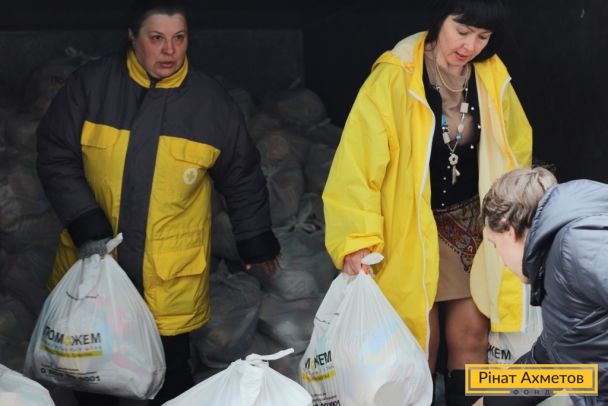 Гуманітарний штаб Ріната Ахметова працює понад 10 місяців. За цей період він видав жителям Донбасу 3 мільйони наборів виживання для дорослих і 200 тисяч дитячих наборів. Такі обсяги роботи вимагають величезних людських ресурсів. На сьогодні у Штабі працюють 1700 волонтерів. Більшість із них задіяні на Донецькому логістичному центрі, розташованому на стадіоні «Донбас арена».