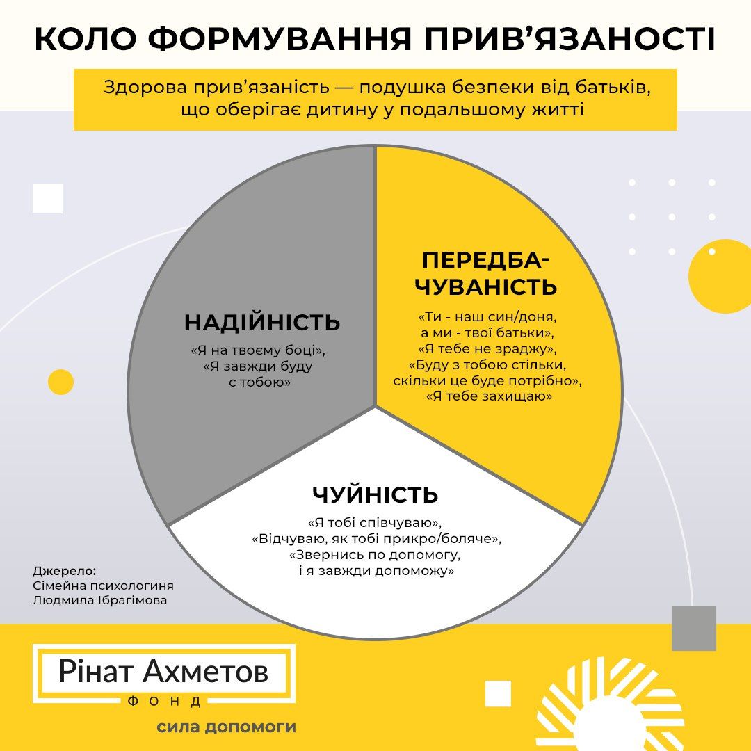 Сформована здорова прив’язаність ‒ це своєрідна подушка безпеки від батьків, яка оберігатиме дитину все її подальше життя.
