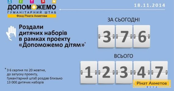Всього за час проекту Гуманітарний штаб роздав 12 347 дитячих наборів сім’ям із Донецька та Макіївки.