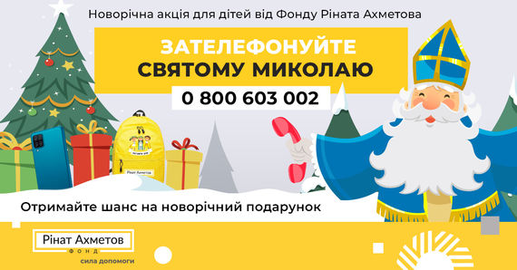 У рамках благодійного проєкту «Рінат Ахметов – Дітям. Новорічна Акція» починає працювати гаряча лінія Святого Миколая, на якій добрий чарівник не лише вислухає історію вашої дитини, а й підтримає її психологічно.