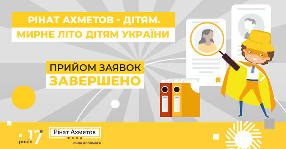 Завершився набір учасників нового сезону проєкту «Рінат Ахметов — Дітям. Мирне літо дітям України». Програма «Рінат Ахметов – Дітям» вдячна усім, хто зареєструвався на цей захід.