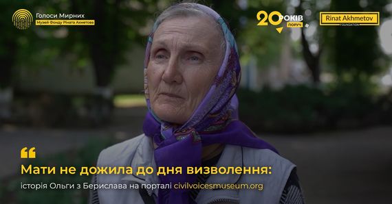 «Мати не дожила до дня визволення»: історія Ольги з Берислава увійшла до Музею «Голоси Мирних» Фонду Ріната Ахметова