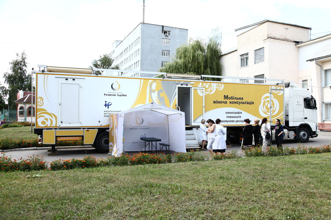 «Мобільна жіноча консультація» – це спеціалізований 18-метровий автопоїзд, створений за європейським зразком для комплексного обстеження органів репродуктивної системи. У цій клініці на колесах є два спеціалізовані кабінети – гінекологічний (з апаратом УЗД, кольпоскопом, інвентарем для збирання цитологічного матеріалу) і мамологічний, де жінкам роблять мамографію молочних залоз.