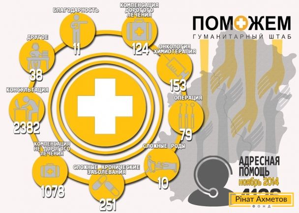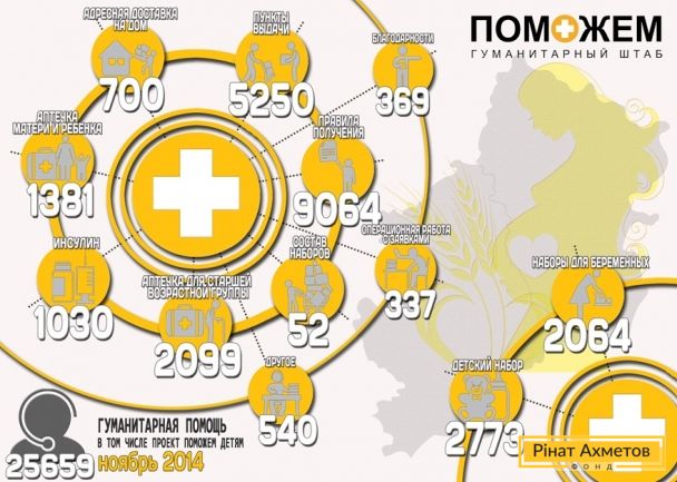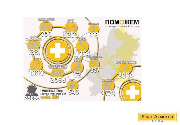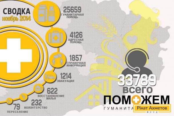 Напомним, всего в ноябре 2014 года "горячая линия" Гуманитарного штаба Рината Ахметова обработала 33 789 обращений. В среднем в день операторы принимали 1126 звонков.