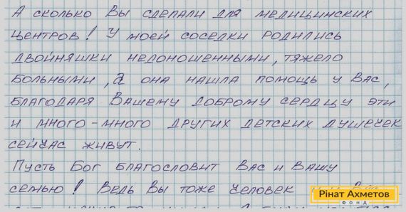 93-летняя Михайлина Демьяновна из Донецка передала в адрес Рината Ахметова и сотрудников Гуманитарного штаба трогательную благодарность за наборы для выживания, которые она регулярно получает от Штаба.