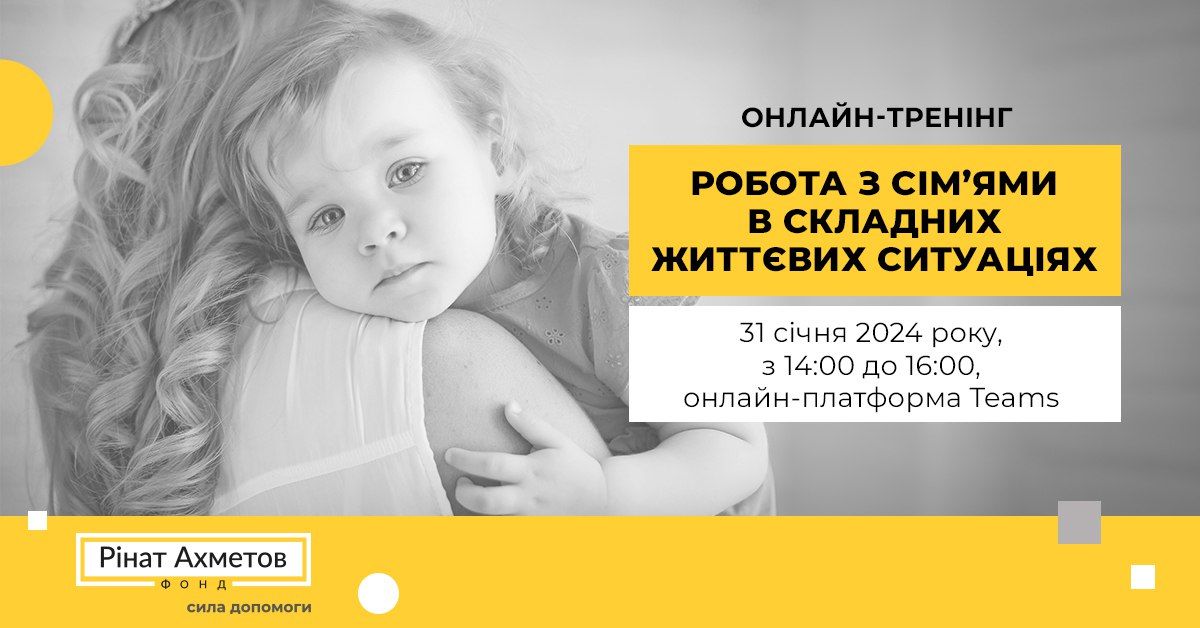 Сьогодні, 31 січня, пройшов онлайн-тренінг на тему «Робота з сім’ями в складних життєвих ситуаціях: допомогти, не можна забирати», організований програмою «Рінат Ахметов – Дітям. Сирітству – ні!».