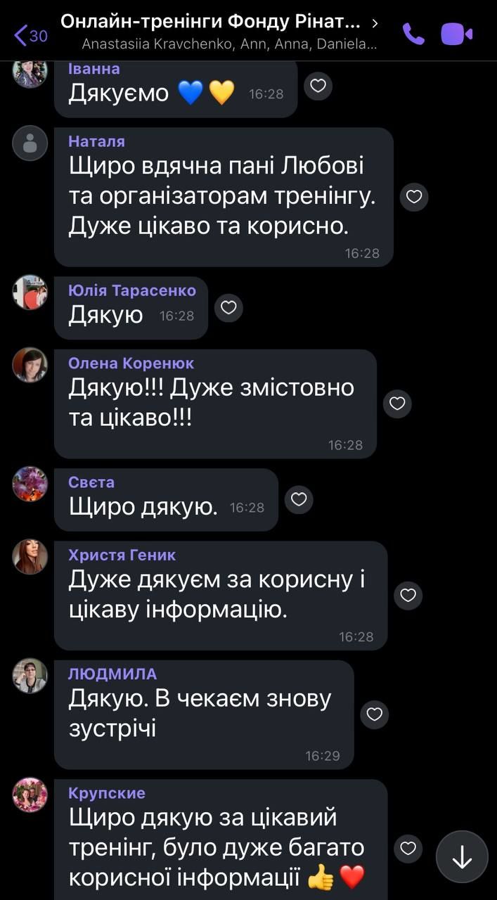 Після проходження тренінгу учасники отримали електронний сертифікат слухача. А ще залишили багато схвальних коментарів та подяки на Вайбер-сторінці чату тренінгів програми «Рінат Ахметов – Дітям. Сирітству – ні!».