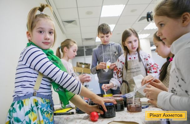 Накануне Пасхи в Академии ДТЭК прошел мастер-класс по росписи яиц для детей-переселенцев из Донбасса, ранее получивших помощь от психологов Гуманитарного штаба Рината Ахметова.