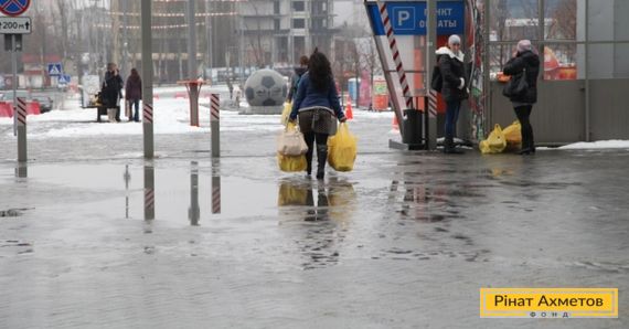 С самого утра на "Донбасс Арене" огромная очередь за гуманитарной помощью штаба Рината Ахметова. Здесь раздают запасы детского питания со складов, но еще пока на всех желающих хватает.
