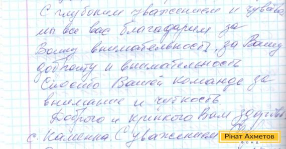 В Гуманитарный штаб Рината Ахметова приходят письма от простых жителей Донбасса. Люди благодарят за оказанную помощь, доброту и внимание.