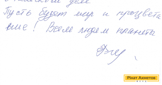 В адрес Гуманитарного штаба Рината Ахметова пришло письмо от Татьяны Владимировны, проживающей в Центрально-Городском районе Донецка. Она благодарит за помощь продуктовыми наборами семьям Донбасса.
