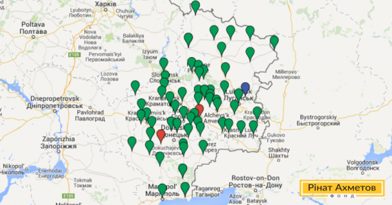 На интерактивной карте оператора представлена текущая ситуация по обеспечению населенных пунктов востока Украины услугами связи: