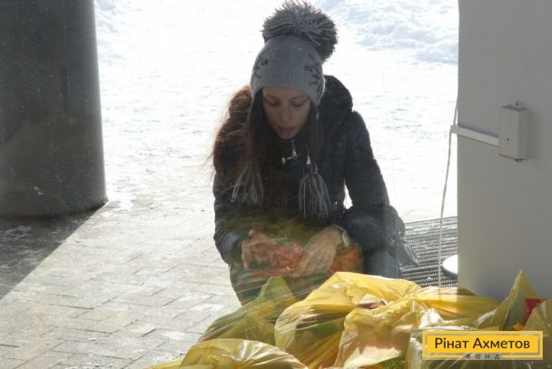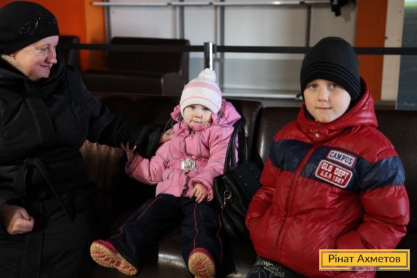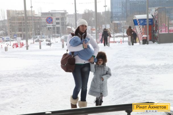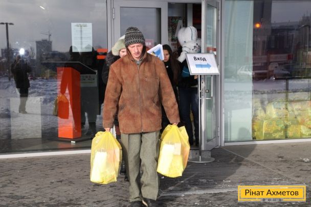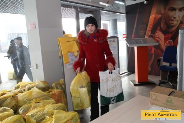 ФОТО. Донбасс Арена получение жителями детской помощи 01.12.2014