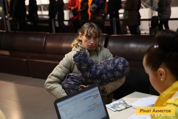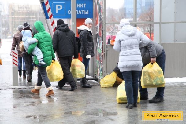 ФОТО. "Донбасс Арена" Выдача "детских наборов" родителям деток возрастом до 2 лет