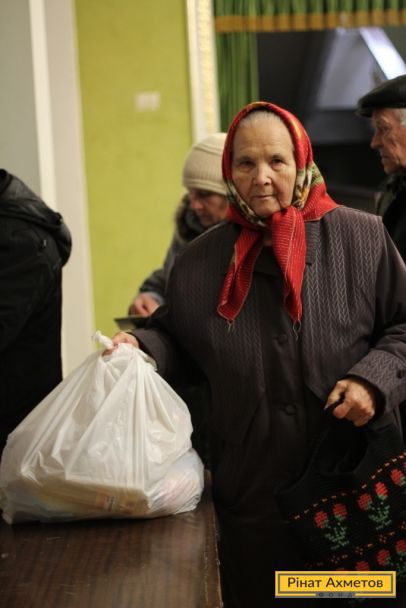 ФОТО. Получение гуманитарной помощи жителями Куйбышевского района в Донецке. 13.11.2014