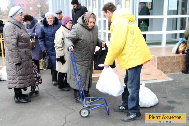 Получение гуманитарной помощи жителями Киевского района в Донецке. 18.11.2014