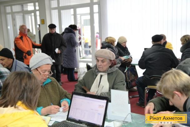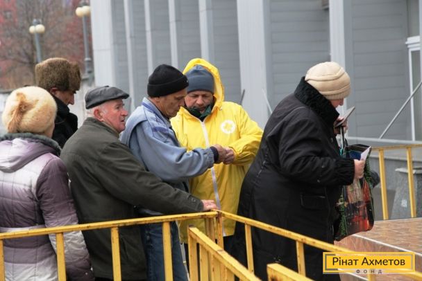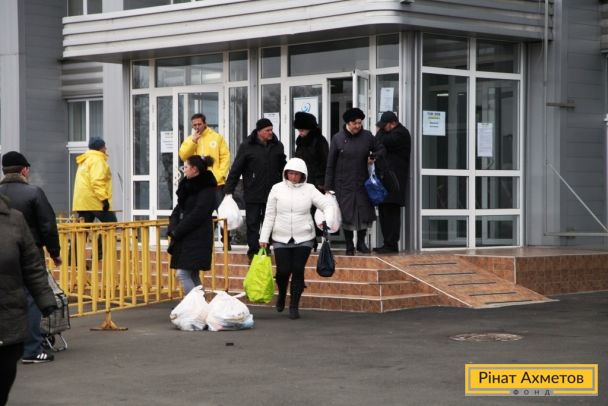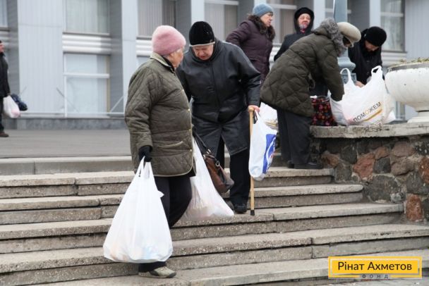 ФОТО. Получение гуманитарной помощи жителями Киевского района в Донецке. 18.11.2014
