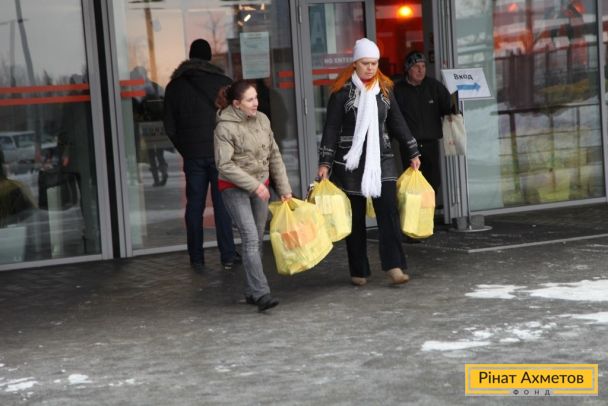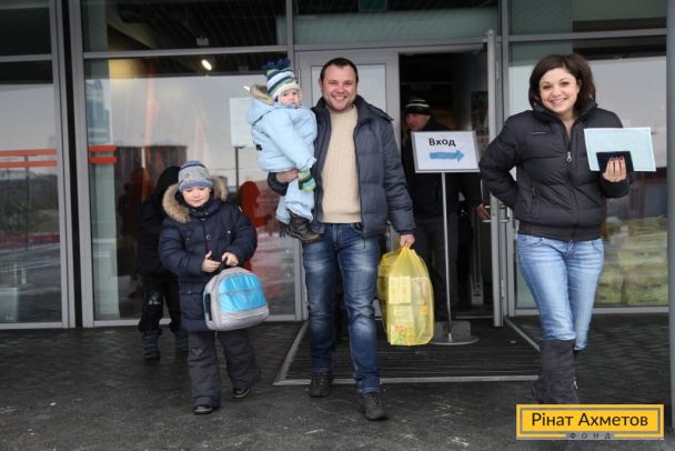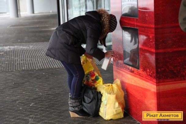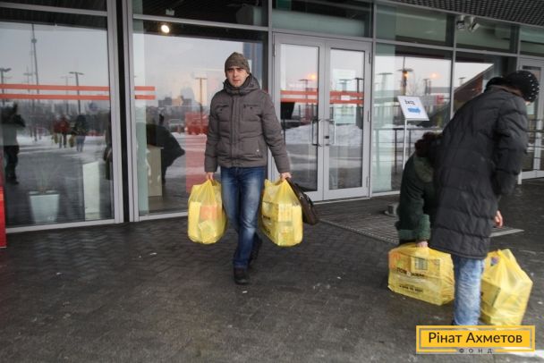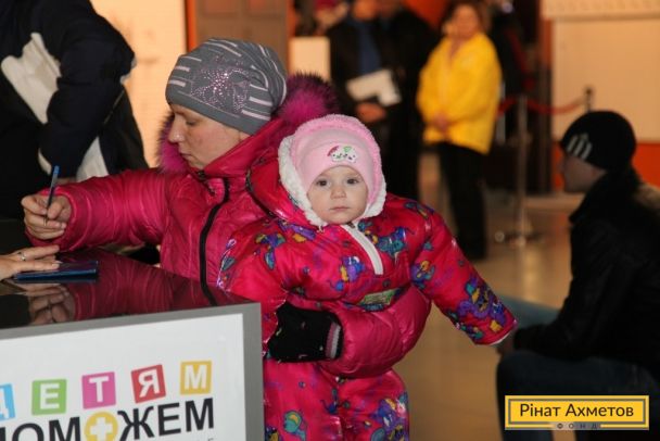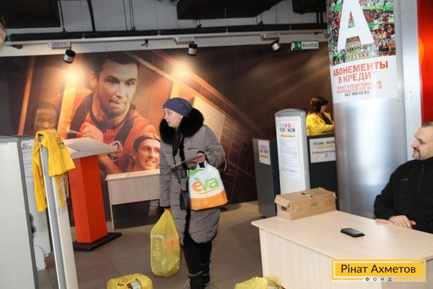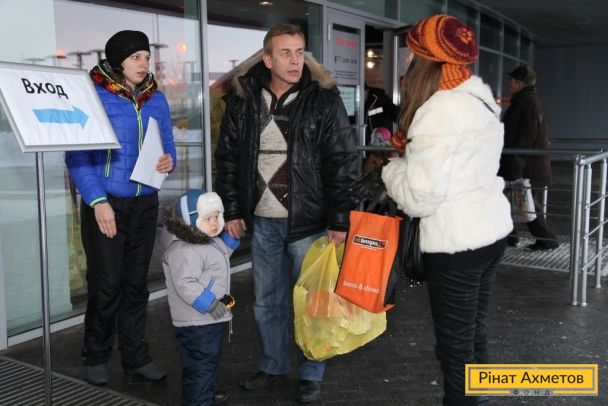 ФОТО. Работа пункта выдачи «детской помощи» на стадионе «Донбасс-Арена» в Донецке 08.12.2014