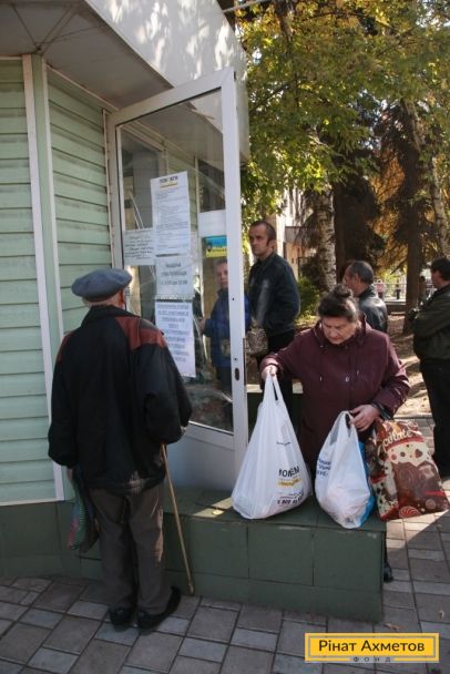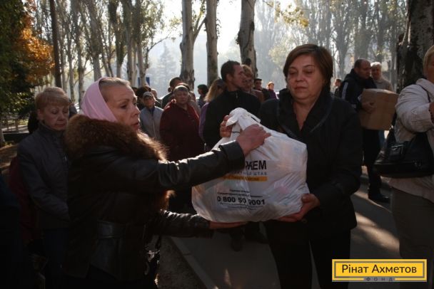 ФОТО. Раздача продуктовых наборов в поселке Октябрьский (Куйбышевский район) и Буденновском районе Донецка. 14.10.2014