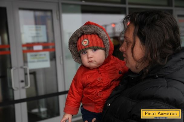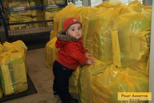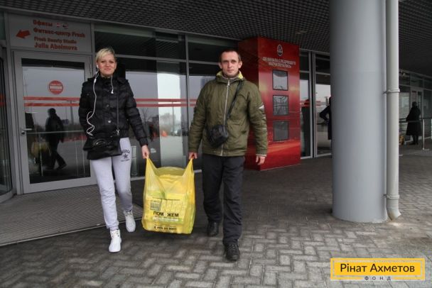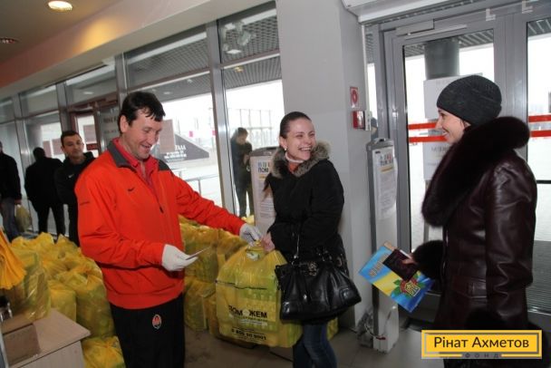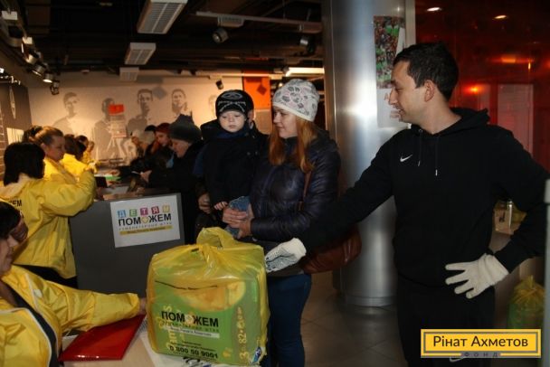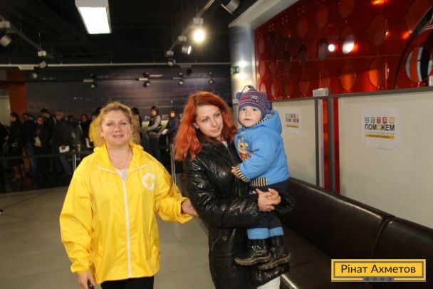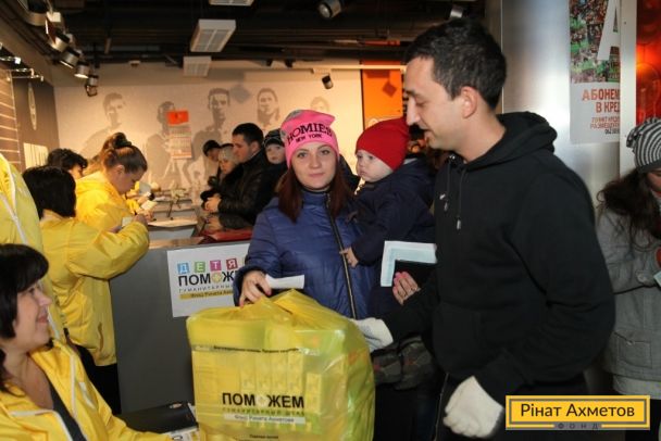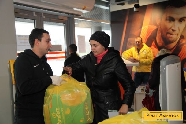 ФОТО. Волонтеры проекта «Поможем детям» раздают «детские наборы» семьям на «Донбасс Арене». 11.11.2014