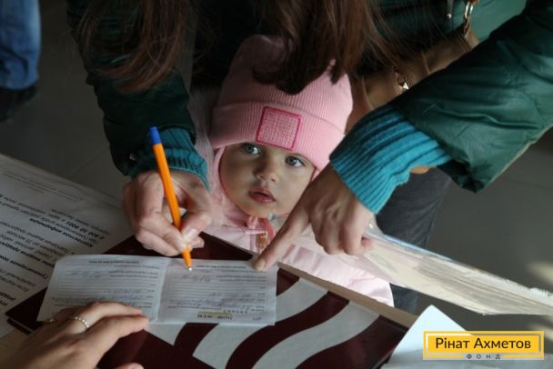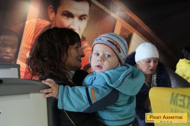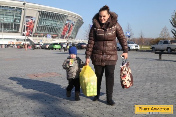 ФОТО. Выдача помощи от Гуманитарного штаба Ахметова семьям с детьми до 2 лет на «Донбасс Арене», 4.11.2014