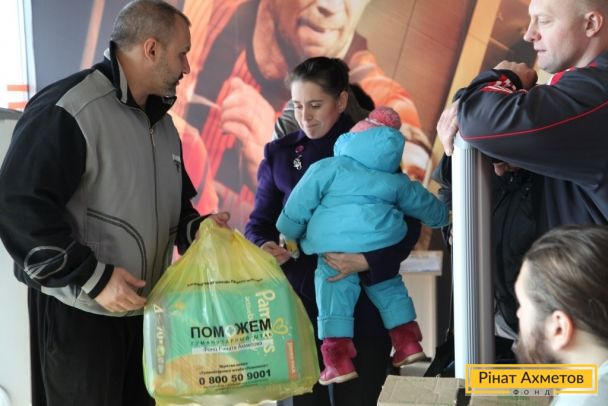 Выдача помощи от Гуманитарного штаба Ахметова семьям с детьми до 2 лет на «Донбасс Арене», 4.11.2014