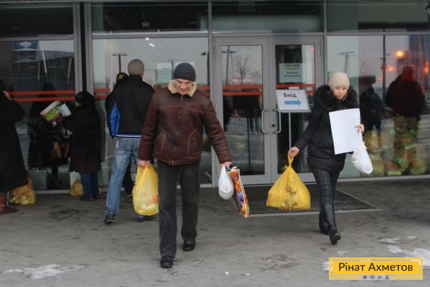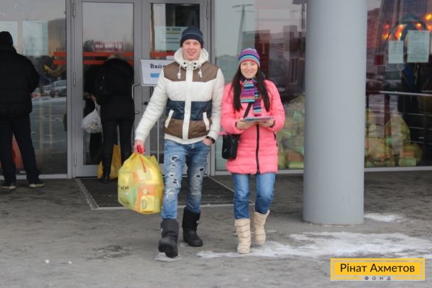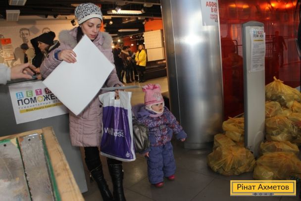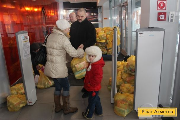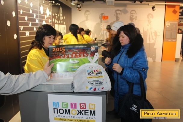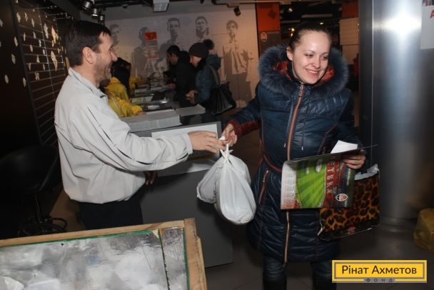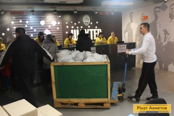 ФОТООТЧЕТ. Выдача «детских наборов» волонтерами ФК «Шахтер» семьям с детьми на «Донбасс Арене» 29.12.2014