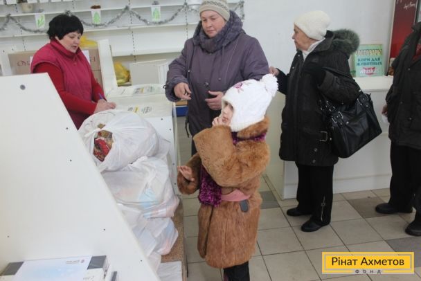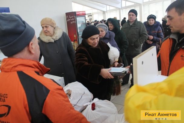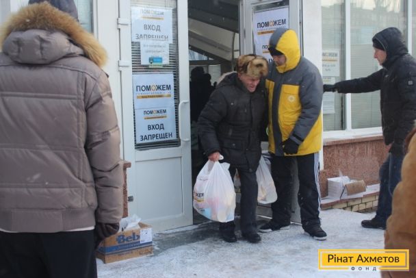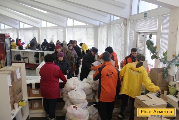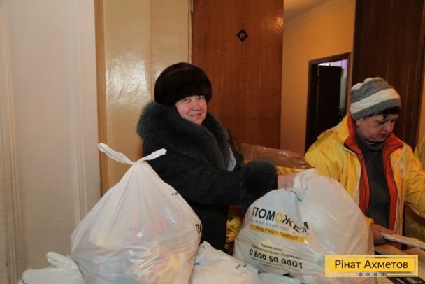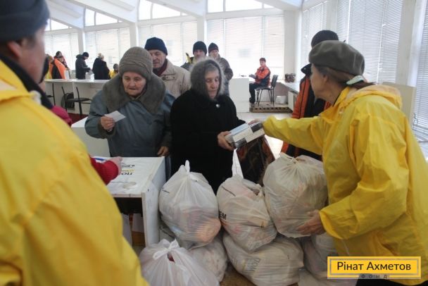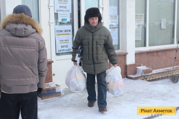 ФОТООТЧЕТ. Выдача гуманитарной помощи в Ленинском, Ворошиловском, Буденновском районах Донецка и в поселке Октябрьский