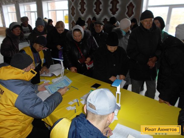 698 жителей и переселенцев в селах Бугас, Лесное, Польное и Южнодонбасская Волновахского района Донецкой области получили помощь от мобильной бригады Штаба Рината Ахметова. Продуктовые наборы получили пенсионеры, многодетные семьи, родители-одиночки, инвалиды и другие социально незащищенные категории. 48 детских наборов было выдано семьям с детками до 35 месяцев.