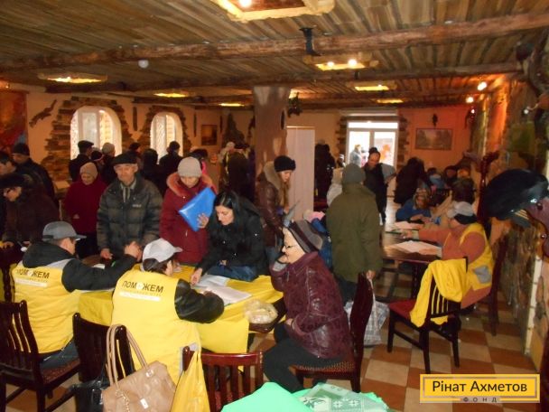 С запросом о помощи мирным жителям Сартаны в Штаб Ахметова обратились местные власти. Их представители предоставили помещение для работы волонтеров, подготовили списки жителей, помогали координировать очередь во время выдачи.