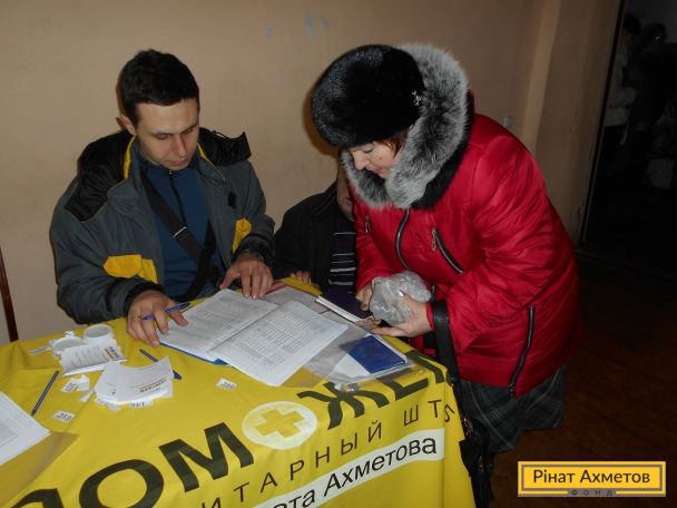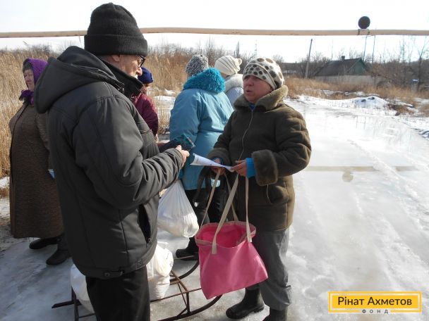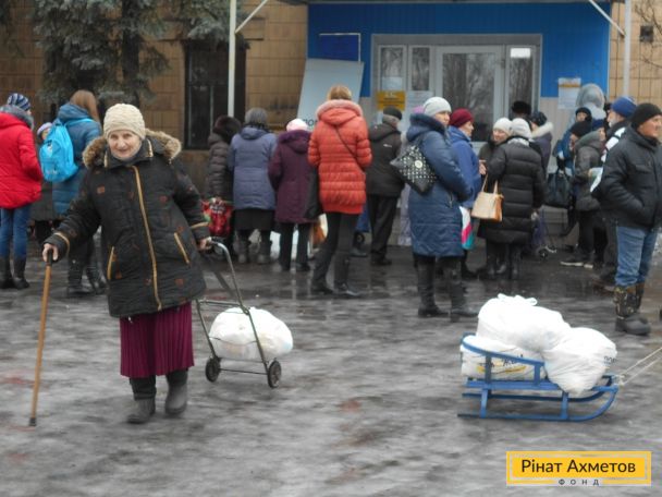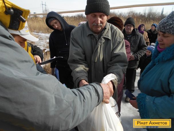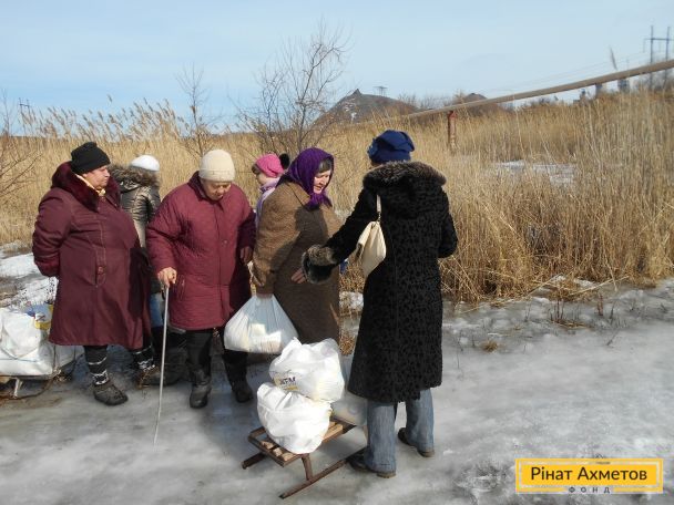 В то время как выдача гуманитарной помощи заблокирована на неподконтрольной территории Донецкой области, Штаб Рината Ахметова продолжает выдавать наборы выживания на подконтрольной территории и в «серой зоне».
