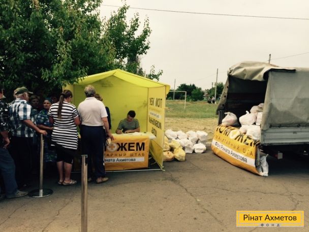 ФОТОРЕПОРТАЖ. Маленькие села Амвросиевского района продолжают получать помощь от Штаба Ахметова