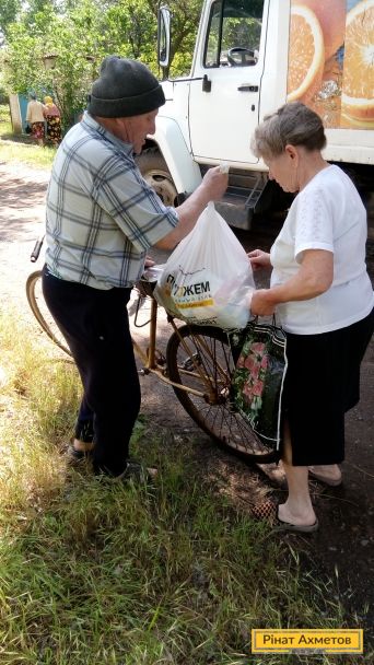 Еще 304 мирных жителя из 9 отдаленных населенных пунктов Амвросиевского района Донецкой области получили продуктовые наборы от мобильных групп волонтеров Гуманитарного штаба Рината Ахметова.
