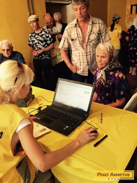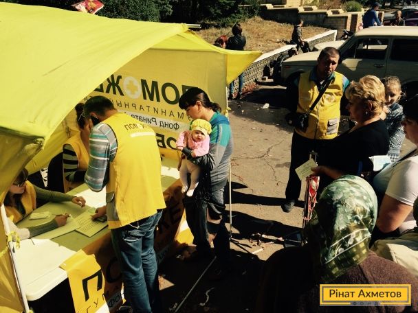 ФОТООТЧЕТ. Мирные жители Снежного получают наборы выживания от Штаба Рината Ахметова