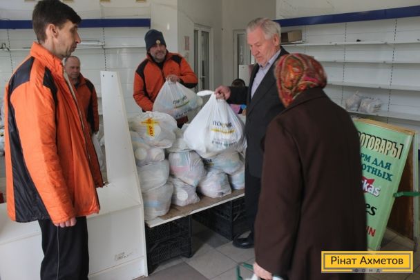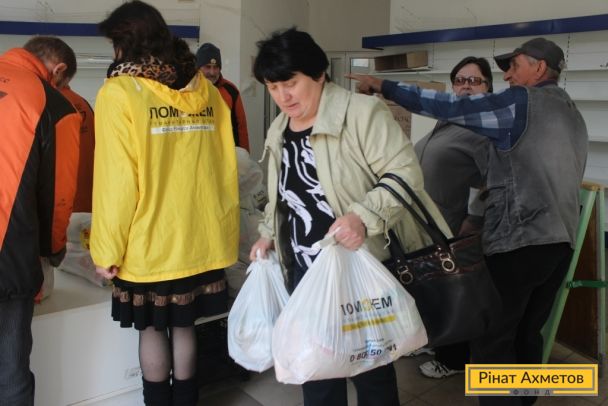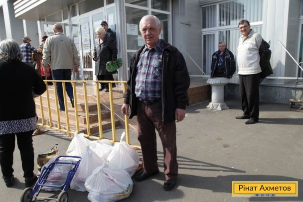 ФОТООТЧЕТ. Мирные жители трех районов Донецка получают наборы выживания от Штаба Рината Ахметова, 13 апреля