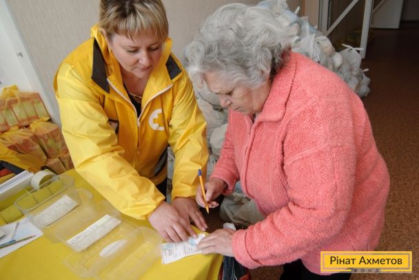 ФОТООТЧЕТ. Наборы выживания от Гуманитарного штаба получают жители Буденовского района Донецка