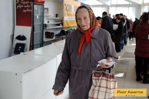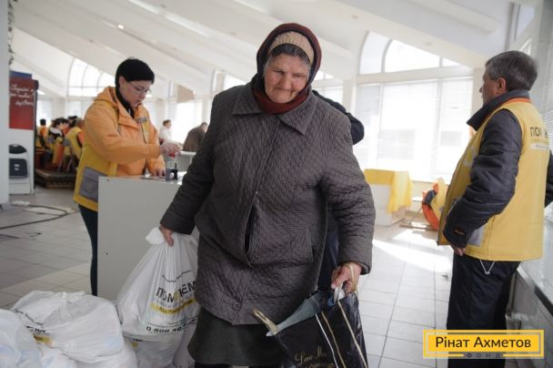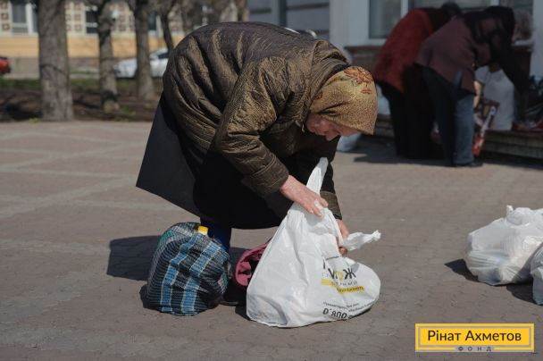 Выдача гумпомощи в Буденновском и Ленинском районах Донецка, 1 апреля