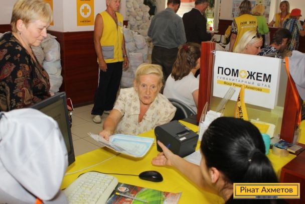 Выдача наборов выживания в Ворошиловском и Пролетарском районах Донецка, 8 сентября.