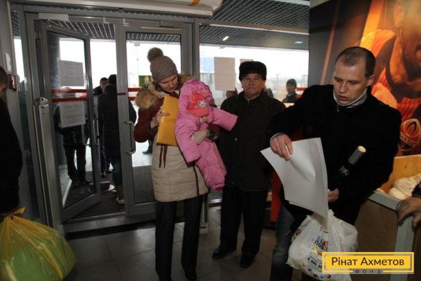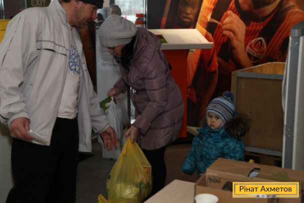 ФОТООТЧЕТ. Выдача детских наборов от Гуманитарного штаба на Донбасс Арене 23.12.2014