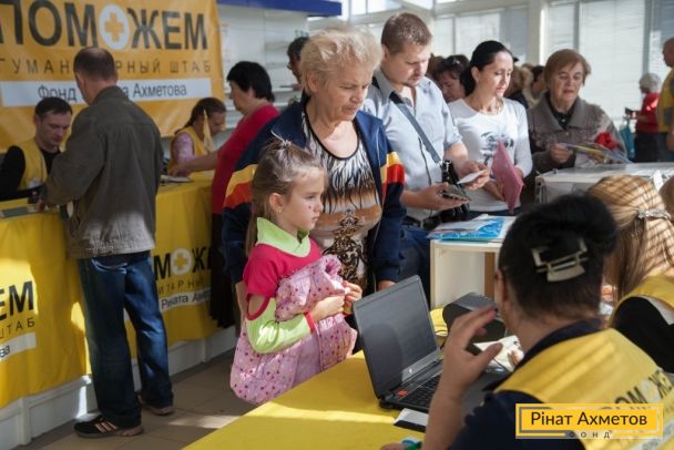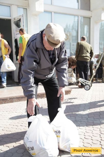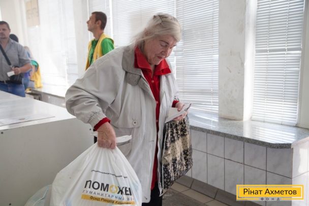 ФОТООТЧЕТ. Выдача гуманитарной помощи от Штаба Ахметова в Ленинском районе Донецка, 6 октября