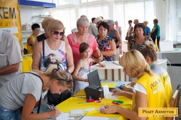 ФОТООТЧЕТ. Выдача гумпомощи в Ленинском и Кировском районах Донецка, 2 августа