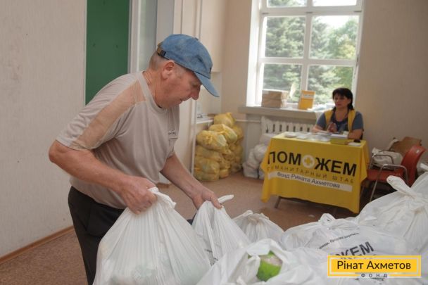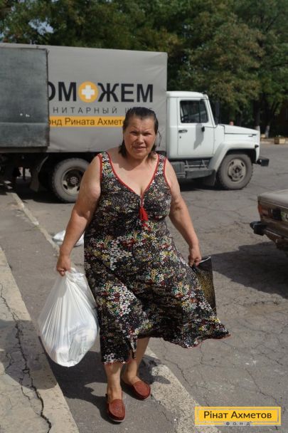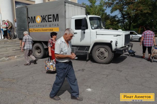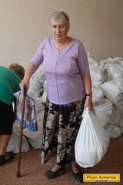 ФОТООТЧЕТ. Выдача продуктовых наборов в Буденновском и Ворошиловском районах Донецка, 22 августа