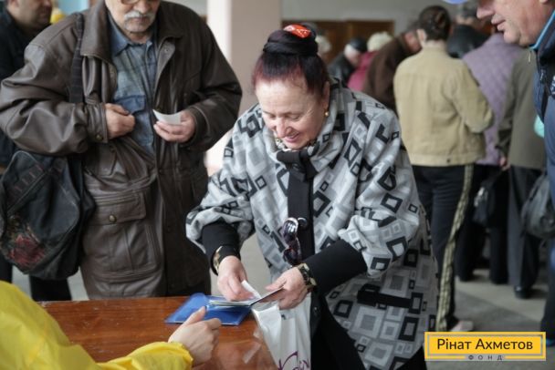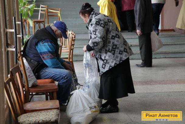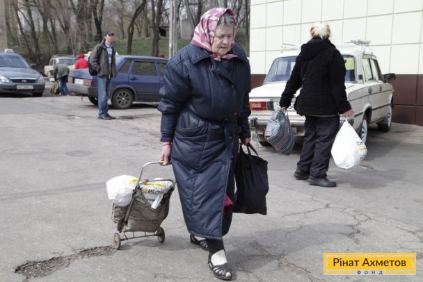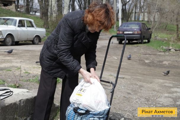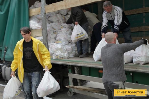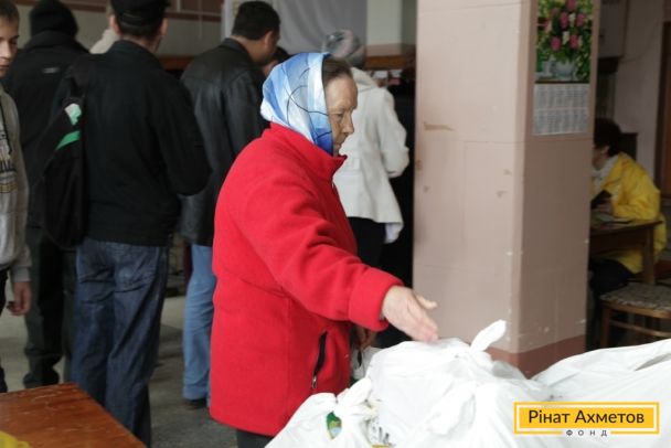 Жители Буденовского района Донецка получают гуманитарную помощь от Рината Ахметова, 16 апреля