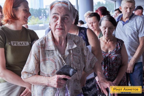 ФОТООТЧЕТ. Жители Калининского района Донецка получают гуманитарную помощь, 17 августа