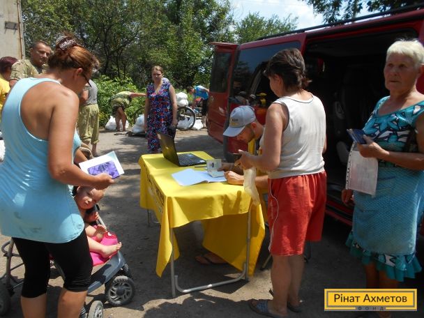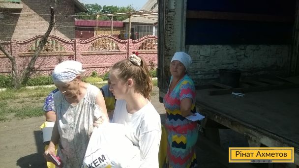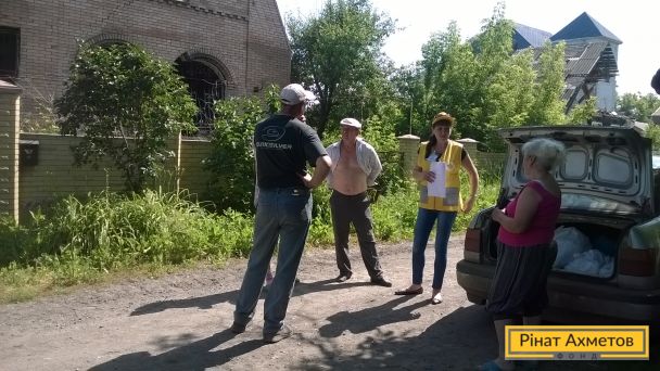 Мобильная бригада волонтеров Штаба Рината Ахметова 20 июня в третий раз доставила гуманитарную помощь оставшимся мирным жителям Песок. Всего там сейчас проживает 14 человек. В этом населенном пункте на самой линии соприкосновения продолжаются обстрелы, нет воды и элементарных благ цивилизации.